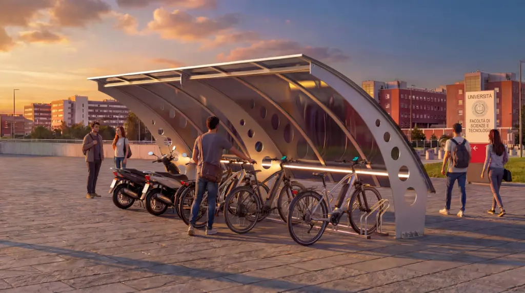 In questo senso, una pensilina non è solo una copertura, ma un incentivo alla mobilità attiva: riduce l’attrito psicologico nel decidere se andare in bici o in auto.
